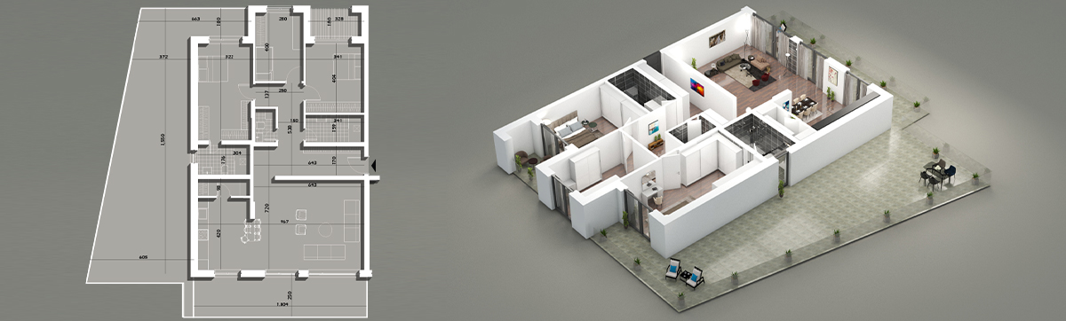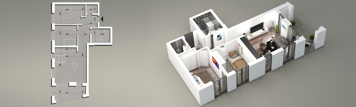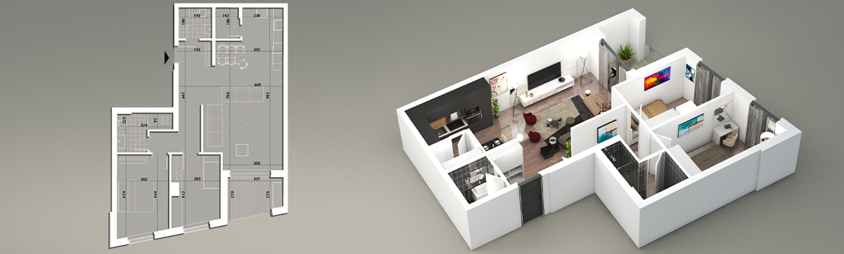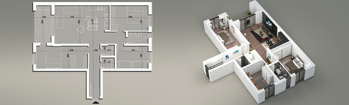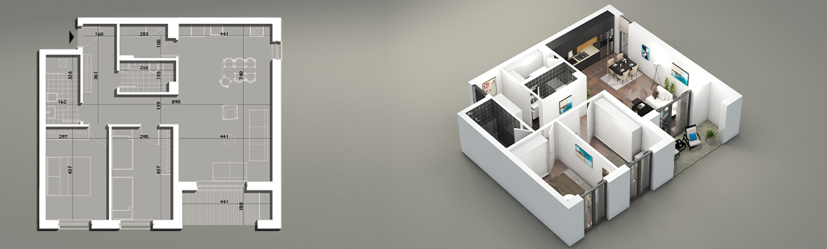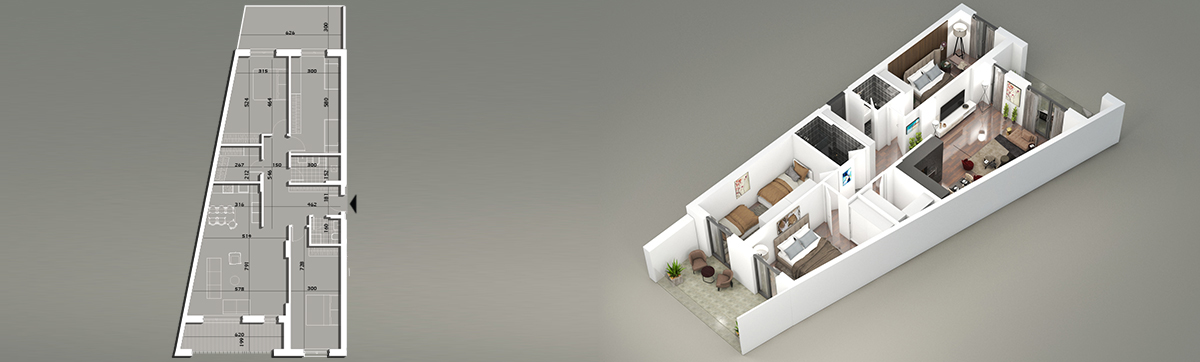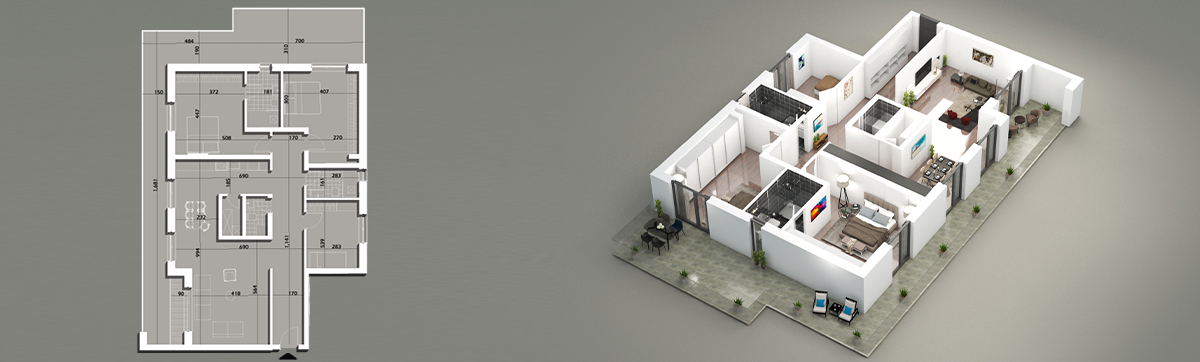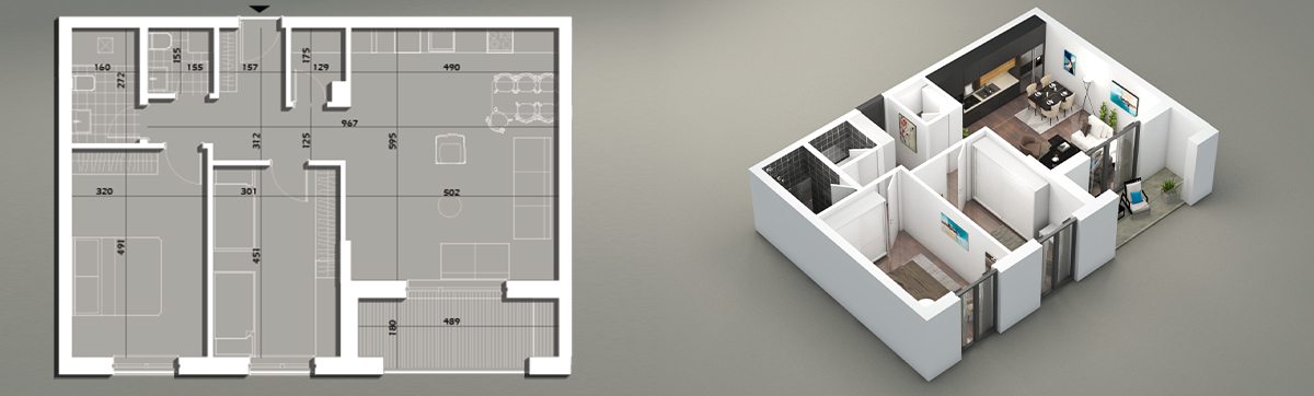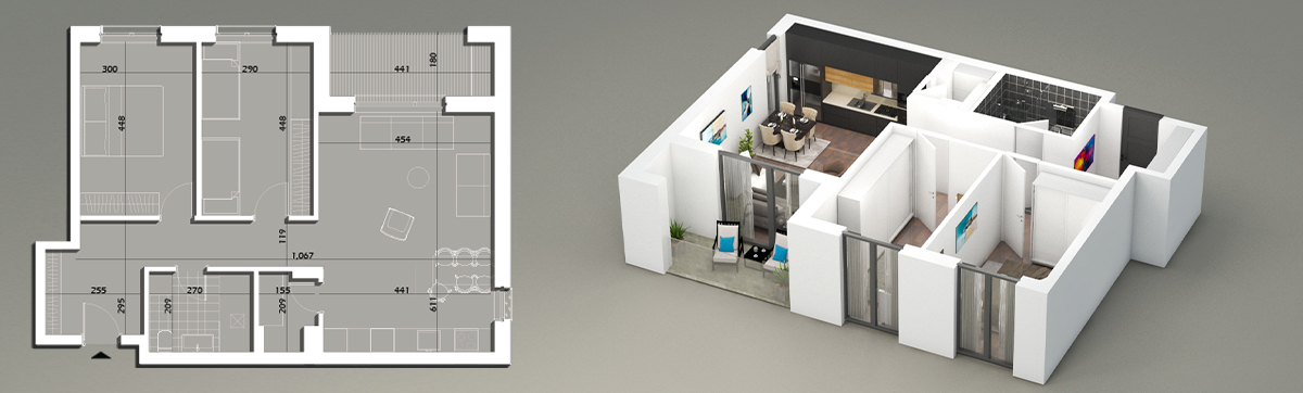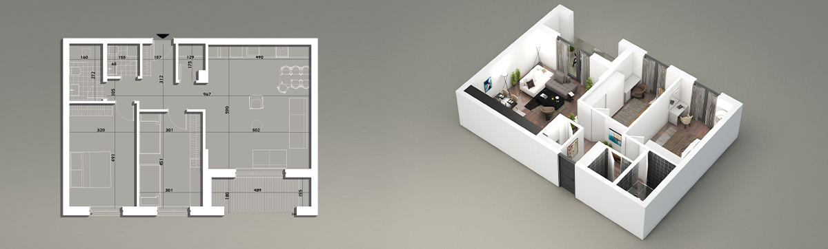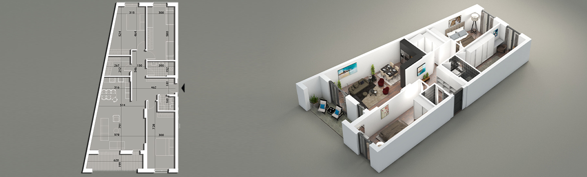 Qëndrimi Ditorë dhe Kuzhina: 29.5 m2 | Dhoma e Fjetjes: 12.5 m2 | Dhoma e Fjetjes: 11.9 m2 | Banjo: 4.1 m2 | WC: 2.7 m2 | Depo: 2.1 m2 | Koridori: 9.9 m2 | Ballkoni: | 9.3 m2