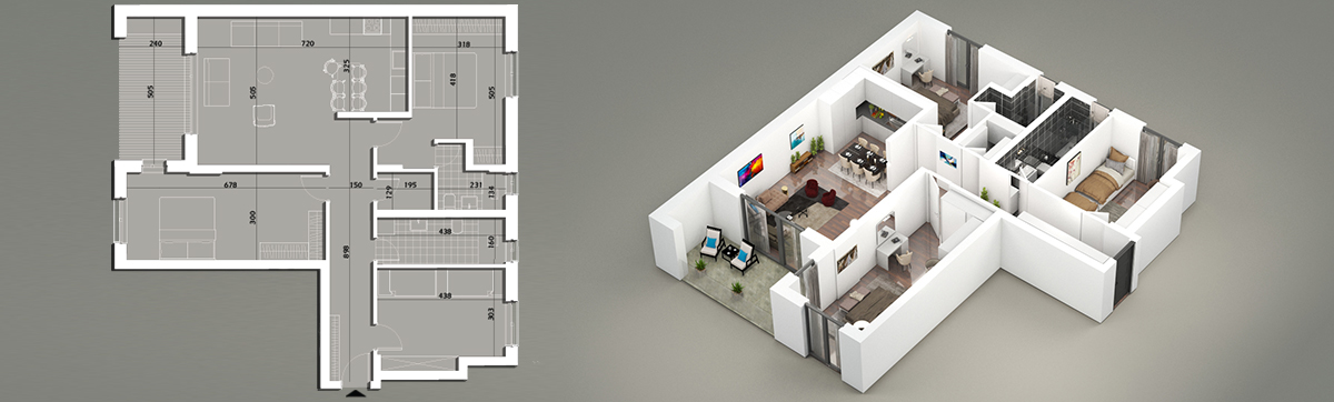 Qëndrimi Ditorë dhe Kuzhina: 32.3 m2 | Dhoma e Fjetjes: 20.3 m2 | Dhoma e Fjetjes: 16.6 m2 | Dhoma e Fjetjes: 12.6 m2 | Banjo: 4.3 m2 | WC: 2.6 m2 | Depo: 2.5 m2 | Koridori: 17.7 m2 | Ballkoni: | 12.1 m2